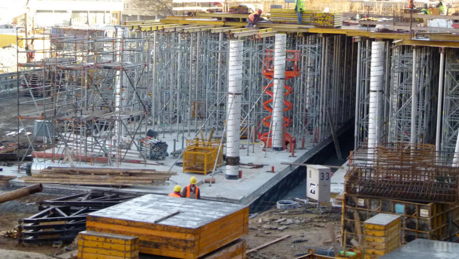 Bau der neuen Eingangshalle (Mall)